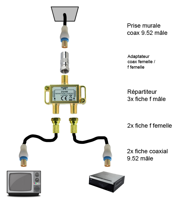 Té de répartition fiche F pour câble antenne TV coaxial (à l'unité) OPTEX 840066: Amazon.fr: High-tech